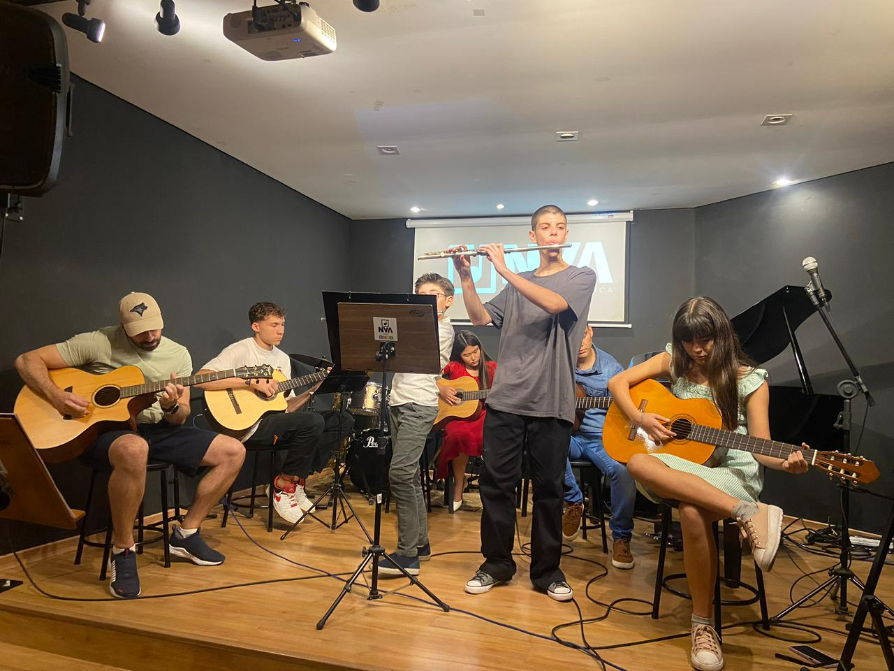 APRESENTAÇÕES MUSICAIS POR CATEGORIA DE INTRUMENTOS: A escola faz várias apresentações pedagógicas no auditório para os alunos. Essas apresentações são importantes para o aluno perder o medo de tocar em público e mostrar para os familiares e amigos o que está aprendendo em aula.